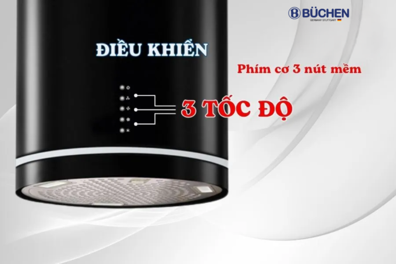 Buchen Smart 885ISB được trang bị bảng điều khiển độc đáo, sử dụng công nghệ phím cơ mềm, tạo ra sự dễ sử dụng và linh hoạt. Với 3 tùy chọn tốc độ khác nhau, người dùng có thể điều chỉnh công suất hút phù hợp với nhu cầu nấu ăn và mức độ khói, mùi. Điều khiển cơ mềm không chỉ giúp linh hoạt trong việc điều chỉnh máy mà còn mang lại trải nghiệm sử dụng thuận lợi và đơn giản. Bạn có thể dễ dàng điều khiển máy chỉ bằng cách nhẹ nhàng chạm vào các phím cơ mềm trên bảng điều khiển.